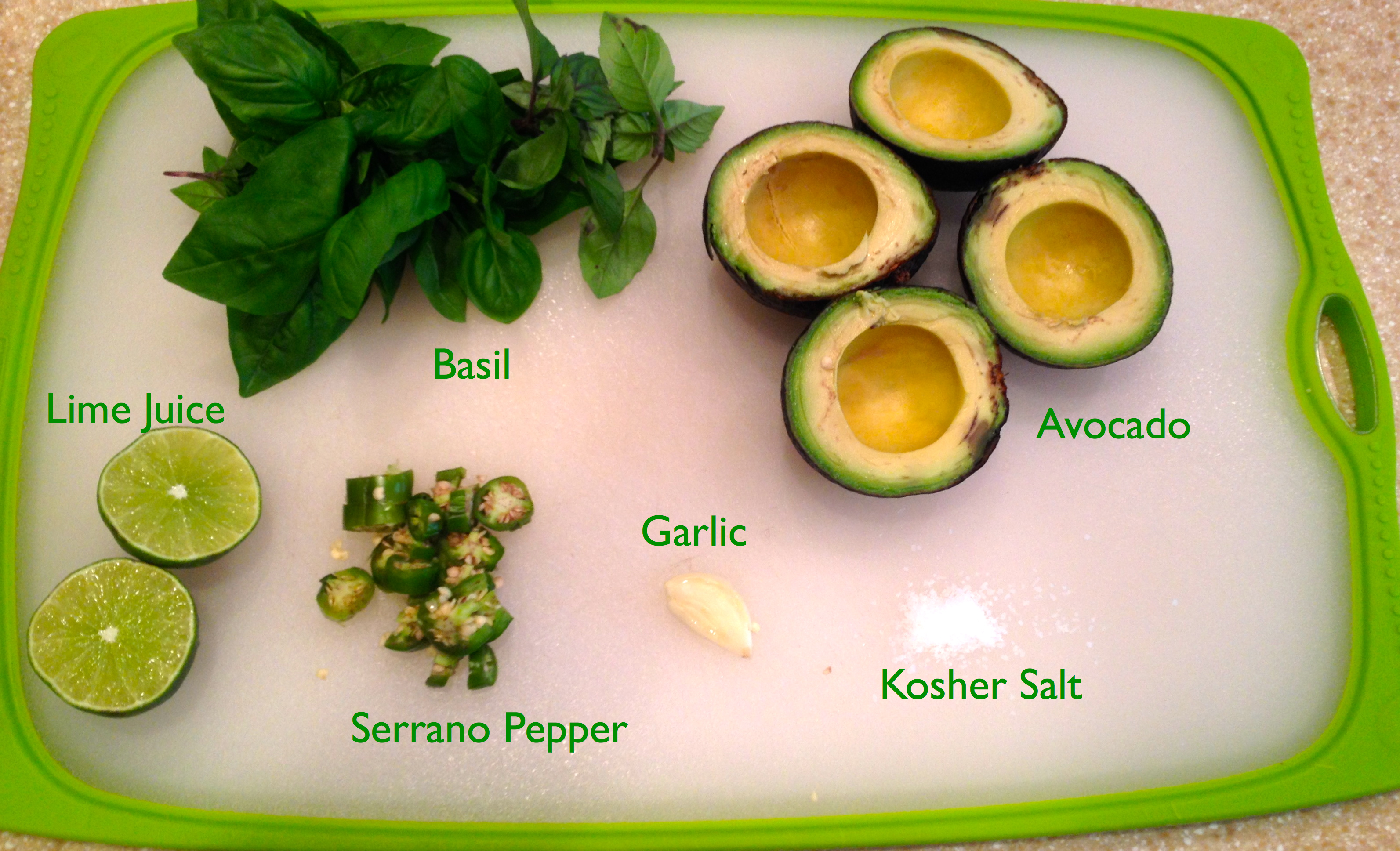 Pulse first 5 ingredients together in a food processor until well chopped; then add in your avocados and blend until smooth.
